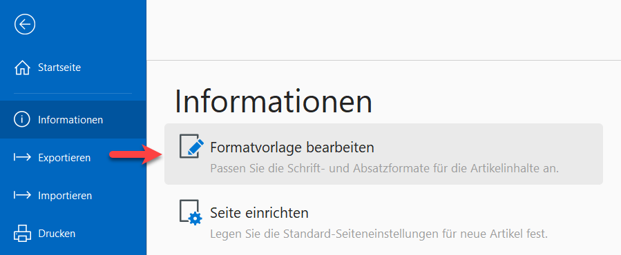 Über "Formatvorlagen bearbeiten" können Sie die dem jeweiligen Wissensgebiet zugehörigen Formatvorlagen ändern und löschen sowie nötigenfalls neue erstellen.