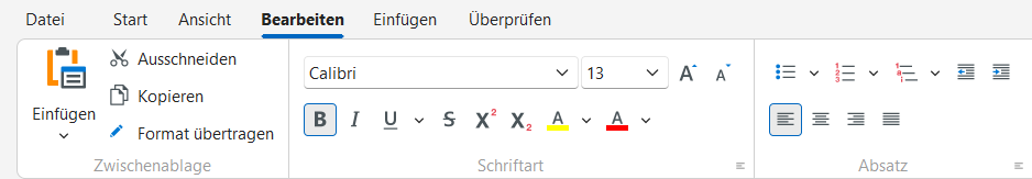 Unterstützt werden Sie durch die Menüleiste "Bearbeiten". In dieser finden Sie alle Funktionen zum Einfügen und Gestalten von Text inkl. der Verwendung von Formatvorlagen und der Möglichkeit zur Definition grundsätzlicher Artikeleigenschaften.