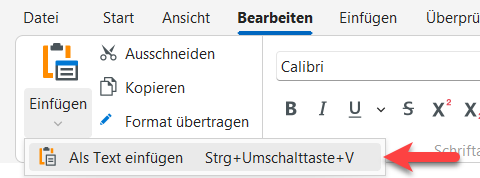 Wenn Sie Inhalte über den Zwischenspeicher in einen Artikel einfügen, übernimmt lexiCan die ursprüngliche Formatierung. Wenn Sie dies nicht wünschen, öffnen Sie das Pull-down Menü von "Einfügen" und klicken Sie auf "Als Text einfügen". In diesem Fall werden Texte entsprechend der Formatvorlage "Standard" eingefügt. Eventuelle Bilder gehen dabei jedoch verloren und müssen nachträglich wieder ergänzt werden.