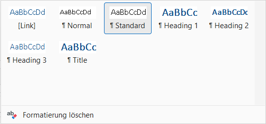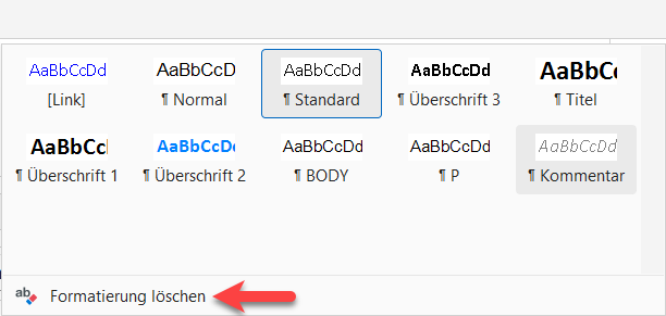 Durch Kopier- und Importvorgänge können Artikel eigene, zusätzliche Formatvorlagen enthalten, die nur im jeweiligen Artikel Wirkung entfalten. Diese können nicht entfernt werden.