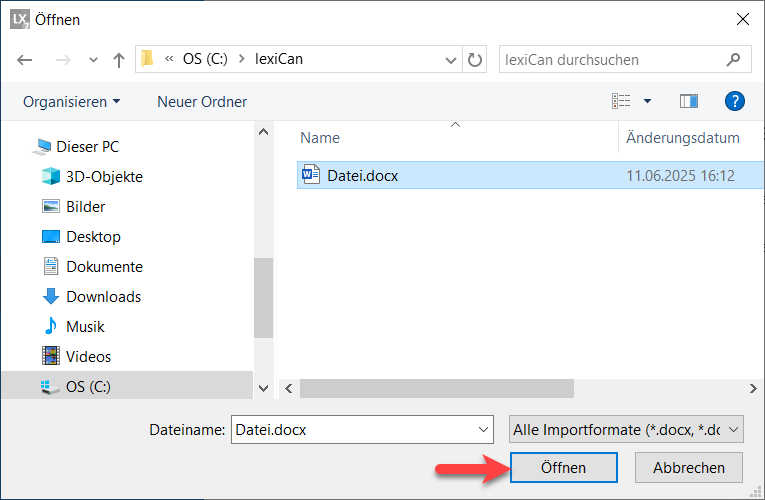 Über das Dialogfenster zur Dateiauswahl wählen Sie die gewünschte Datei aus und bestätigen dies mit einem Klick auf "Öffnen", z.B.