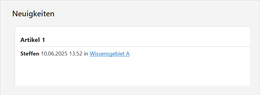 Darunter gibt es die beiden Bereiche "Neuigkeiten" und "Wissensgebiete". Der erste listet alle zuletzt durchgeführten Änderungen in den Ihnen aktuell zugänglichen Wissensgebieten auf, z.B.