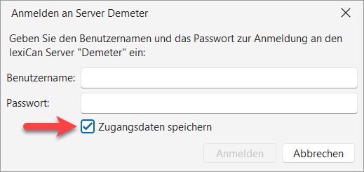 Sollte die Liste kein oder nicht das von Ihnen gewünschte Wissensgebiet aufführen und Ihnen Zugangsdaten mit Benutzername und Passwort zur Verfügung stehen, klicken Sie auf "Anmelden". Geben Sie im Dialogfenster Ihre Zugangsdaten ein und klicken Sie auf "Anmelden". Optional können Sie Ihre Zugangsdaten auf Ihrem Computer speichern.