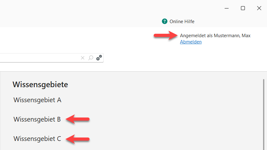 Sollte auch nach einer Anmeldung das von Ihnen gewünschte Wissensgebiet nicht zur Verfügung stehen, wurden Sie nicht richtig autorisiert. Wenden Sie sich in diesem Fall an Ihren Systemadministrator.