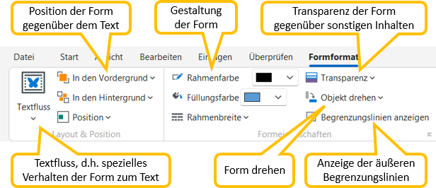 Die Menüleiste "Formformat" steht nur zur Verfügung, wenn eine Form (Zeichenelement) ausgewählt ist.