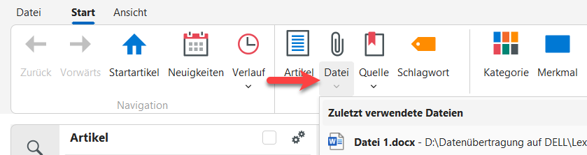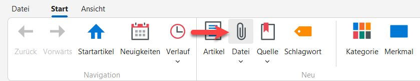 Bei dieser Vorgehensweise erfolgt keine automatische Verknüpfung mit einem Artikel oder einer Quelle. Die Datei ist dann nur einfacher Bestandteil des Wissensgebiets, wird indiziert und kann über die Suchfunktion gefunden werden.
