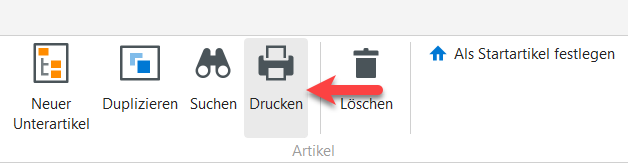 Einzelne Artikel können Sie am leichtesten über die Menüleiste "Start" ausdrucken.