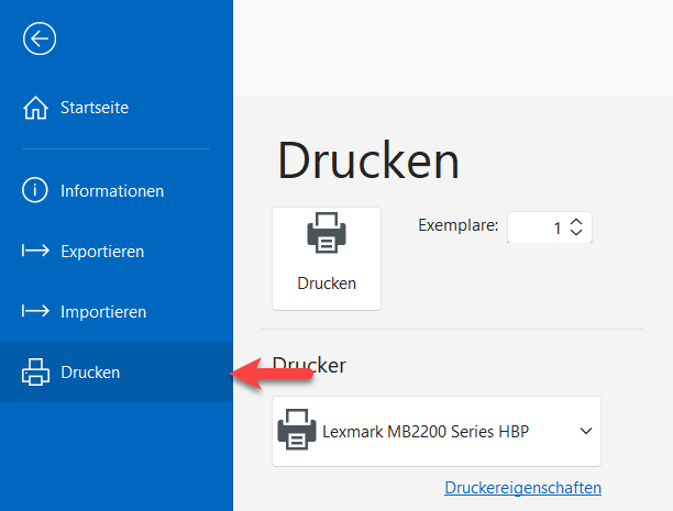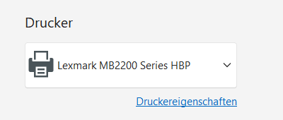 Sie können wie üblich den Drucker wählen und gegebenenfalls dessen Eigenschaften aufrufen, z.B.