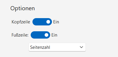 Alle Ausdrucke können optional mit einer Kopfzeile, die den Namen des Wissensgebiets enthält, und einer Fußzeile mit Seitenzahlen versehen werden.