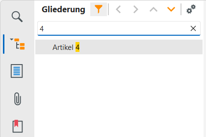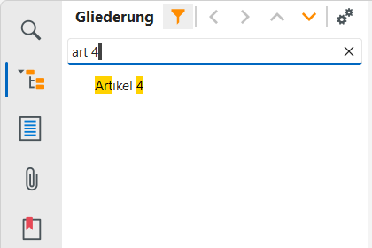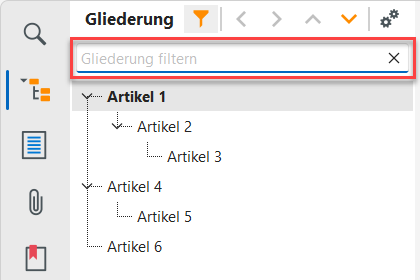 Zur Gliederungsansicht gehört eine eigene Toolbar. Über diese können Sie das Filterfeld verfügbar machen.