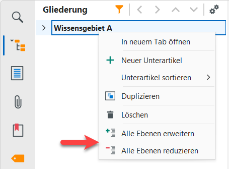 "Alle Ebenen erweitern" und "Alle Ebenen reduzieren"
