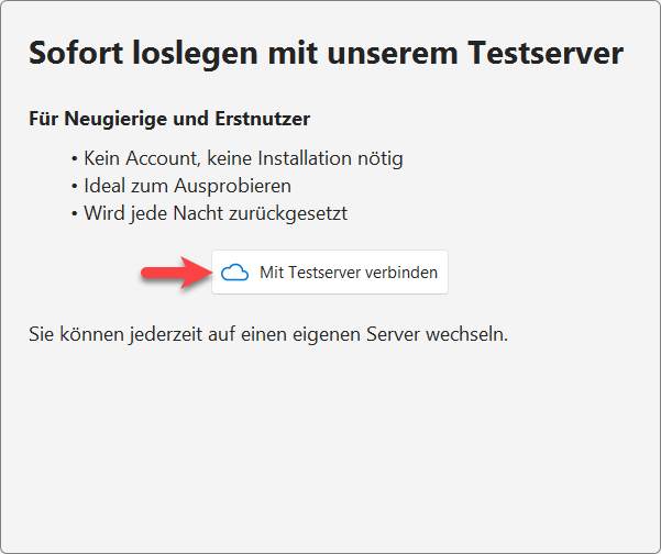 oder tragen Sie rechts den Namen eines oder Ihres Servers ein und klicken Sie auf "Mit Server verbinden", z.B.