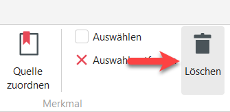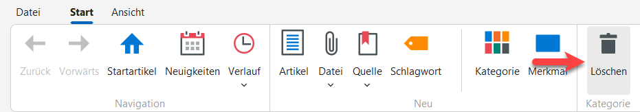 Das Löschen von Kategorien und Merkmalen erfolgt über die Menüleiste "Start".