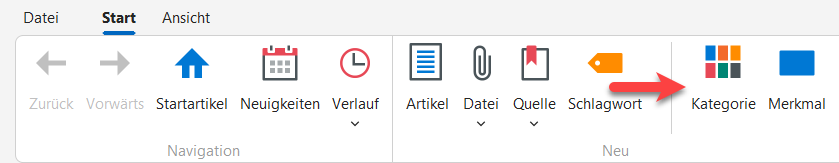 Zum Erstellen neuer Kategorien und Merkmale nutzen Sie die Menüleiste "Start".