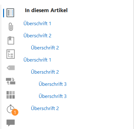 lexiCan erkennt nun anhand der Formatierungen Abschnitte eines Artikels und führt diese im Kontextbereich des Artikels in einem Inhaltsverzeichnis entsprechend der definierten Gliederungsebene als Links auf, z.B.