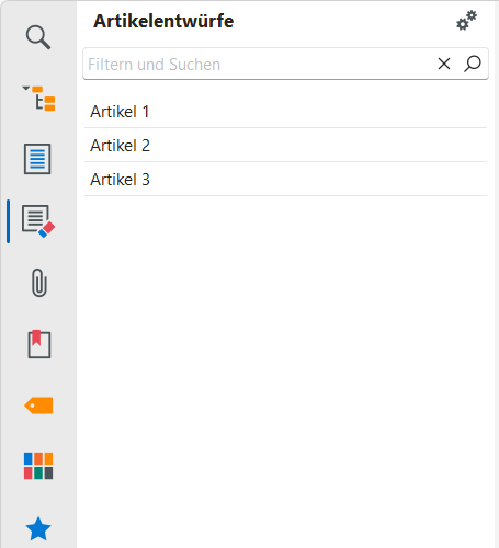 Dieser Bereich ist nur sichtbar für Anwender mit Schreibrechten für das jeweilige Wissensgebiet zur Verfügung und auch nur dann, wenn der Entwurfsmodus für selbiges aktiviert wurde. Hier werden alle Artikel aufgelistet, die noch nicht veröffentlicht wurden, d.h. sich im Entwurfsstadium befinden.