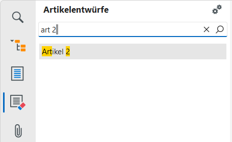 Das Filterfeld in der Toolbar ermöglicht das Filtern der Listeneinträge und eine Reduzierung auf solche Artikel, deren Bezeichnung die eingegebenen Zeichen enthält, z.B.