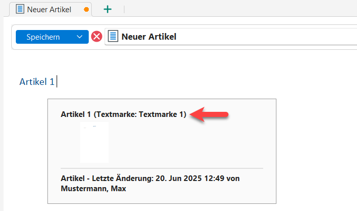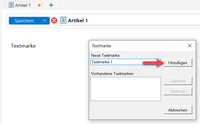Bevor Sie einen Link zur soeben gesetzte Textmarke setzen können, müssen Sie den Artikel zumindest zwischenspeichern.