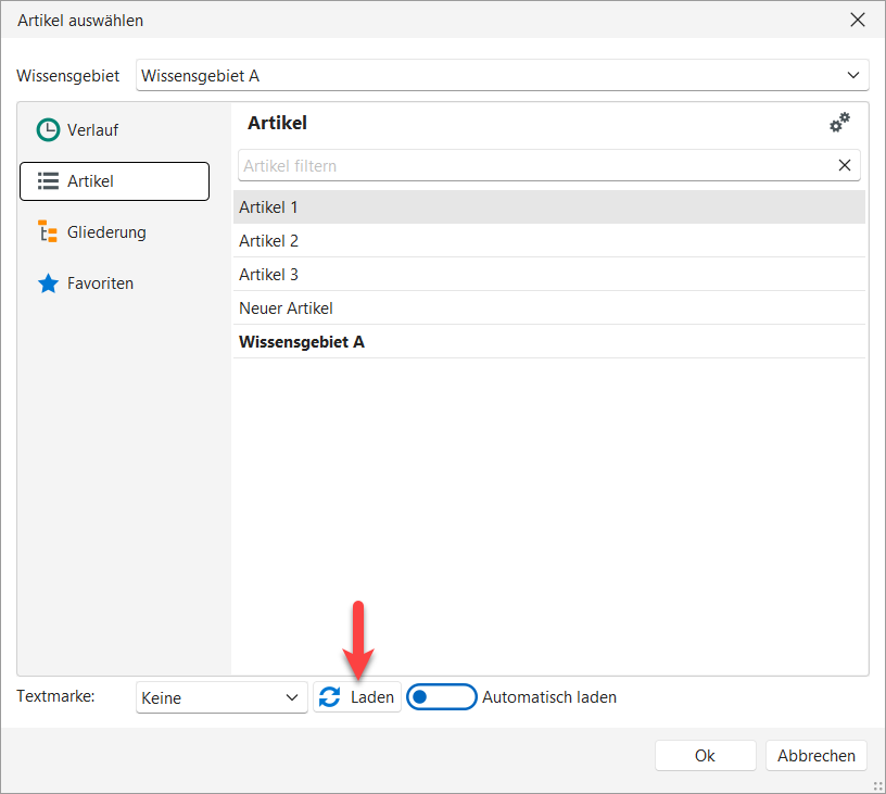 Klicken Sie anschließend im unteren Bereich des Fensters auf "Laden", sofern die Automatik deaktiviert ist.